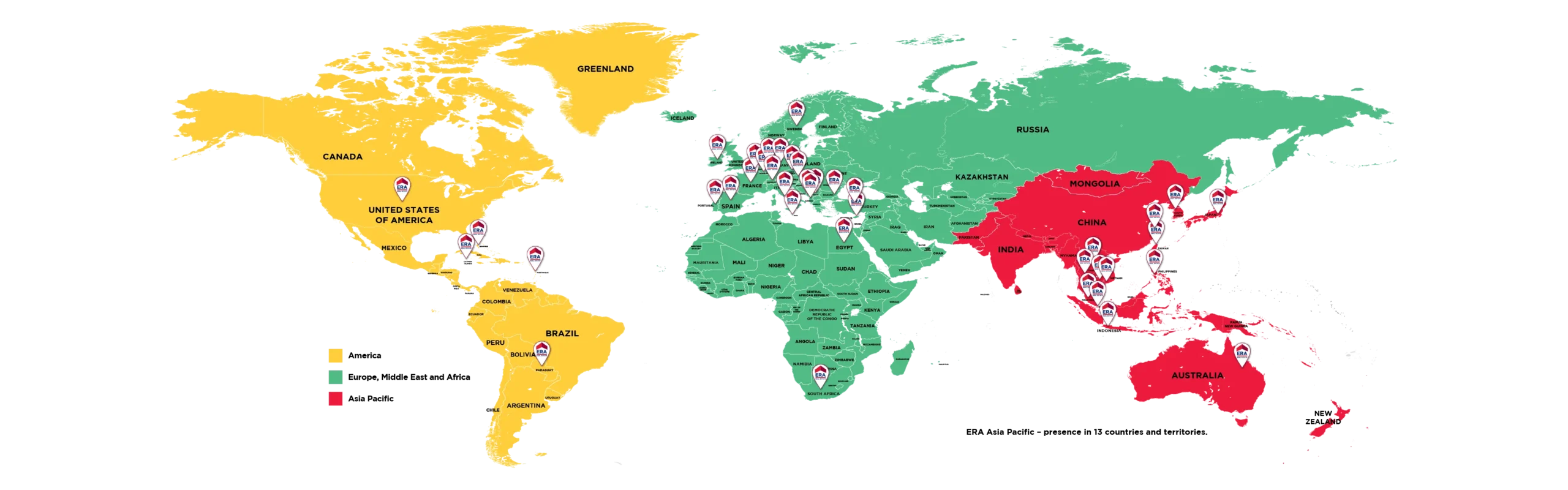 We proudly hold exclusive master franchise rights for the entire Asia Pacific region. As a key member of the ERA global franchise network, we have established a robust regional presence with one of the largest footprints, spanning 13 countries and territories.